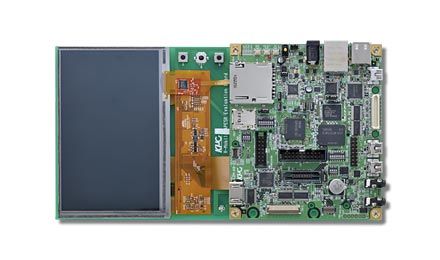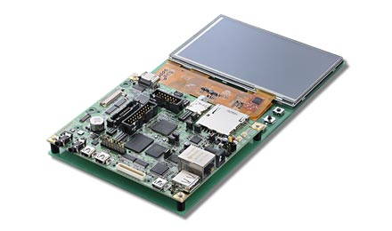 ボードには、マルチタッチ対応のタッチパネル付きLCDの他、SD/USB/LANなど